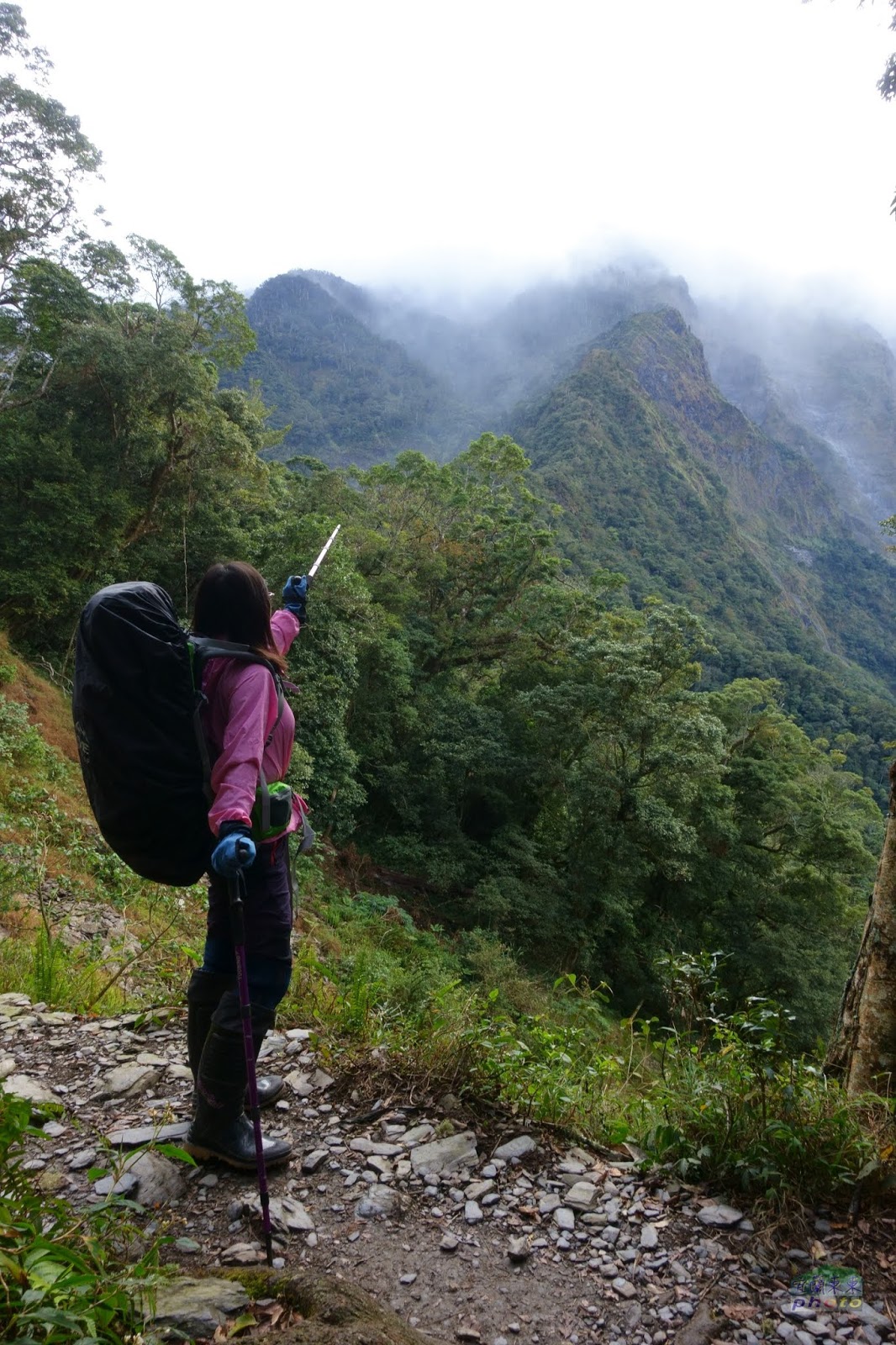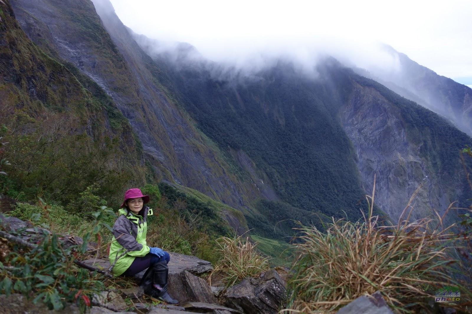 開心下山,回到3k時,回頭望,喜多麗斷崖已被灰雲霧團團包圍,想必山上天氣不佳吧!
