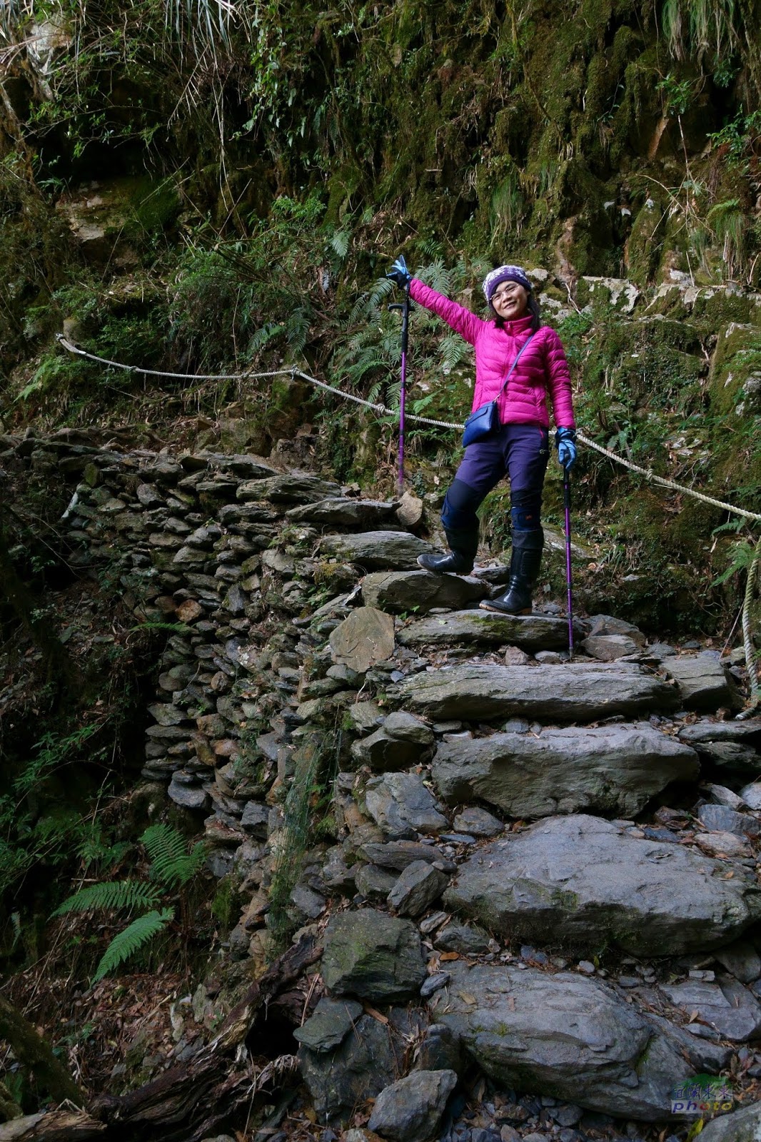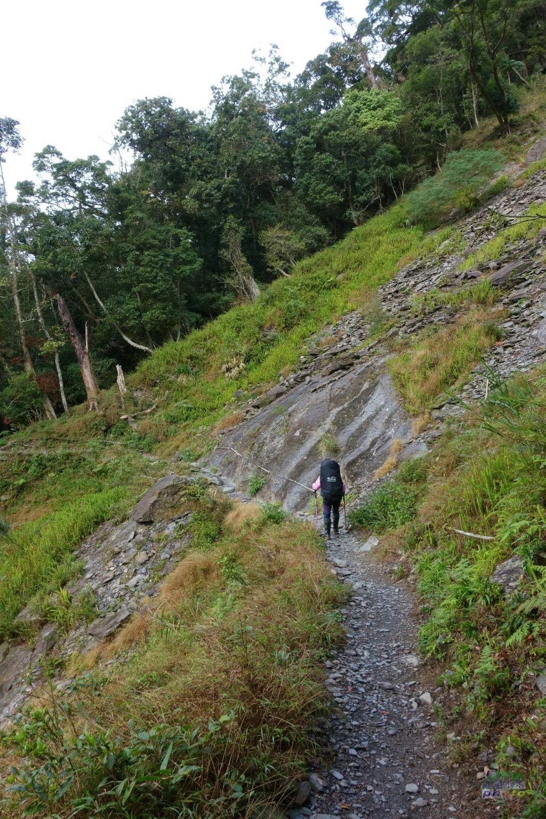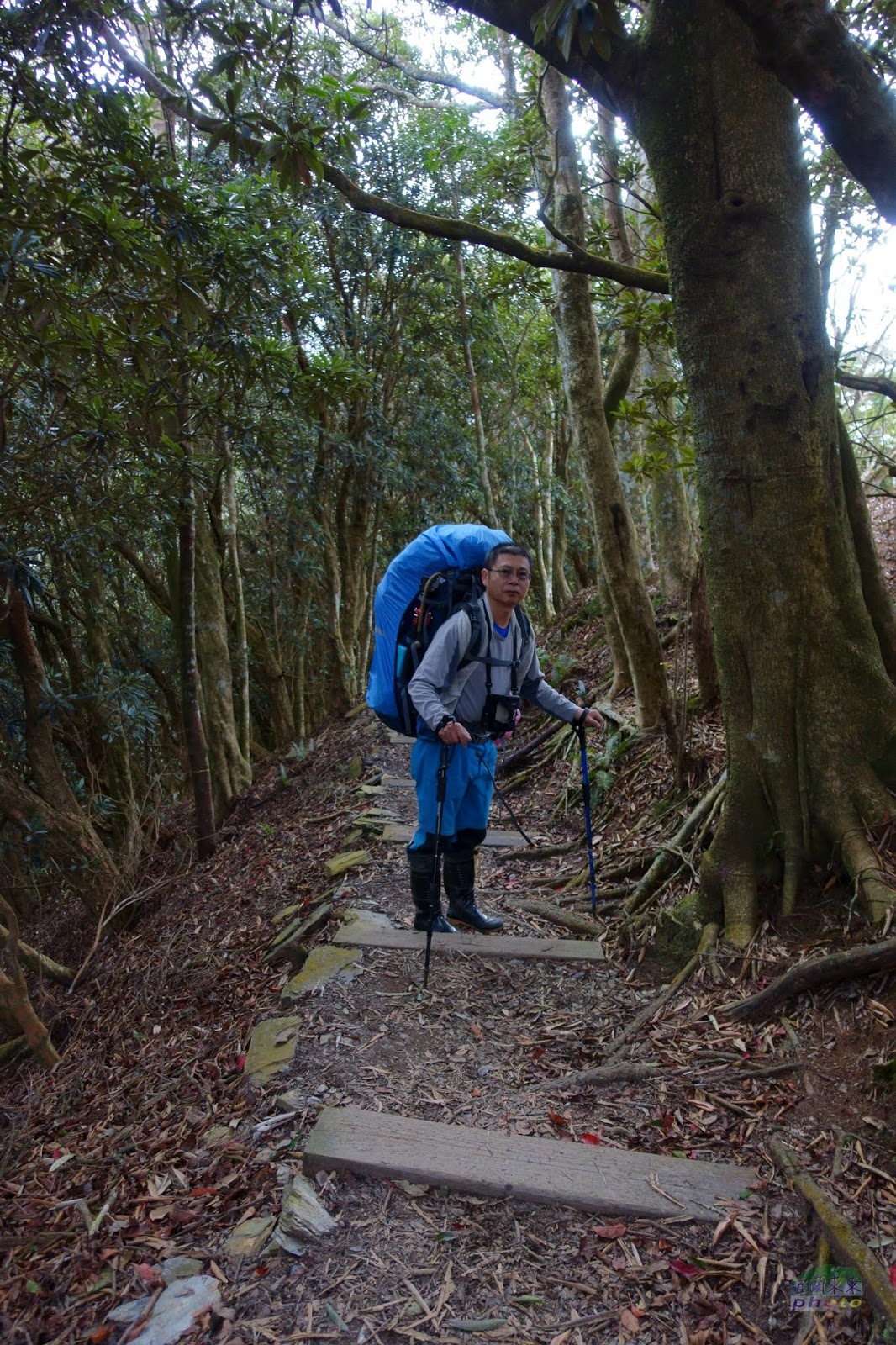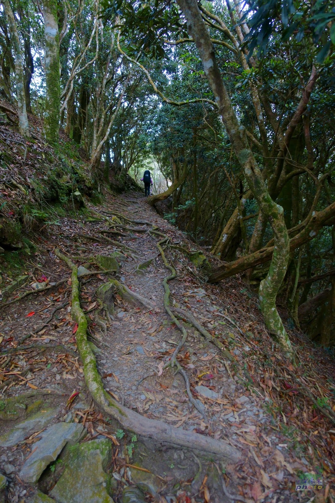 從台灣頭要到台灣尾,實在很耗時,12/29早上6:30出發,到屏東北大武山登山口都已經是下午4,5點了,車上過夜,打算天一亮就動身。沒想到興奮過頭,7點多就寢,11點多醒來就睡不著了; 老公說氣象預報:整個連假,北大武山都是溼冷的天氣,上山可能只有一片白牆,不如趁現在天氣還不錯,賭一把上去,到檜谷山莊重裝卸下,再輕裝上北大武山,說不定不用淋雨。 說走就走,整裝好,摸黑上山,有些憨膽,就只看只走燈照到的地方,兩旁一片漆黑,什麼也看不到,也不覺得怕,憨憨的走。只是下山時,一路懷疑,我是這樣走上來的?有這麼陡?