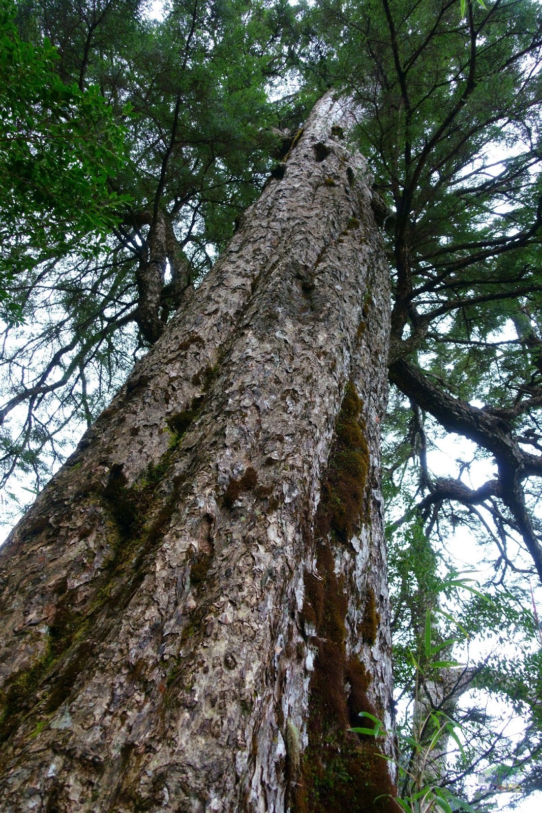 這一路真是吃足了苦頭,埋頭向上,氣喘噓噓,雖然已經是很努力的往上爬,進度卻如牛步一樣緩慢;來到5.25k抬頭仰望大武紅檜神木矗立於此,果然巨大。