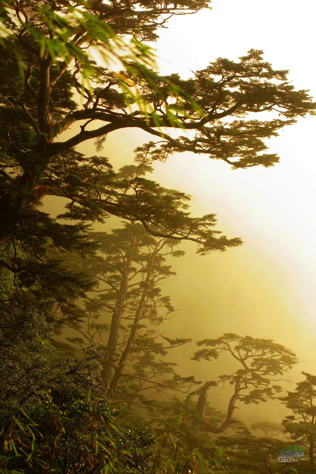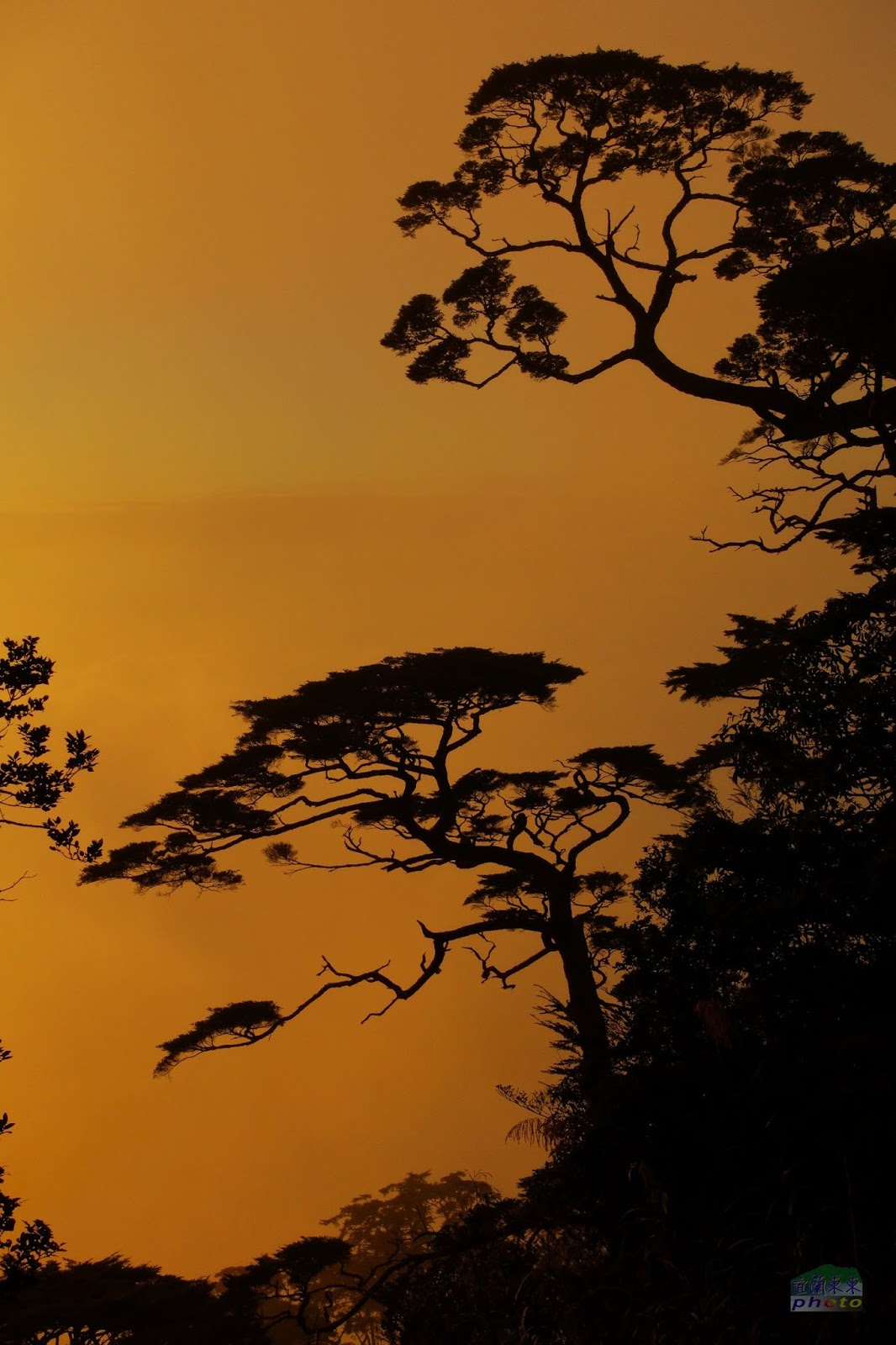 金黃色的天空,鐵杉剪景 |