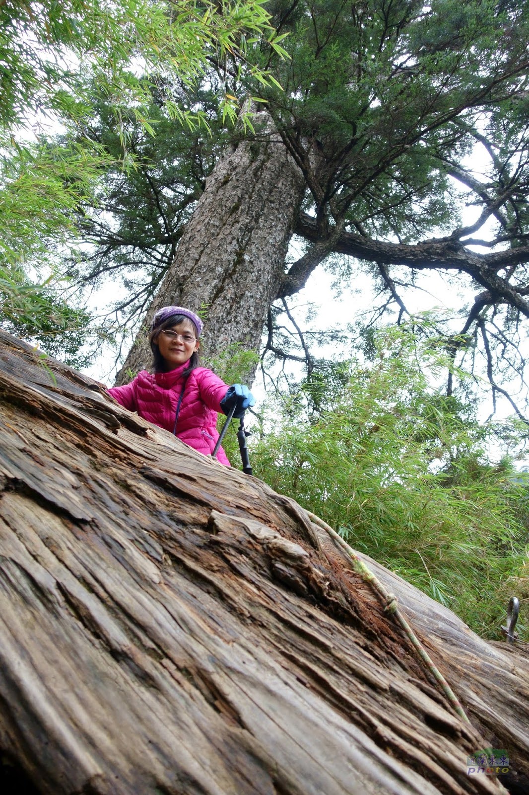 紅檜倒木橫放路口,我得四肢並用的爬過去 |